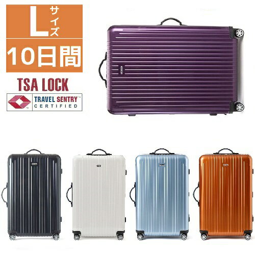 価格: 6,470円 レビュー評価:3.88 レビュー数:8 【使いやすい軽量スーツケースです】 ・メイン素材は丈夫なABS樹脂を採用。 ・引手シャフトは丈夫で軽いアルミを使用し、2段階の高さ調整ができます。 ・カギ不要のダイヤル式TSAロック搭載。(ダイヤル式のためカギは付属しません) ・360°Wキャスターでスムーズに動きます。 【カラ?】 ブラック・ホワイト・シルバー・ネイビー 【Lサイズ】 外寸 約79cm×49cm×29cm 重さ 約4.4kg 約90L税込4,470円 税込5,270円 税込6,470円 (更新日時:2019/04/18 07:55) Supported by 楽天ウェブサービス |